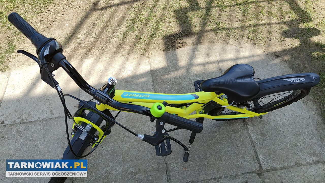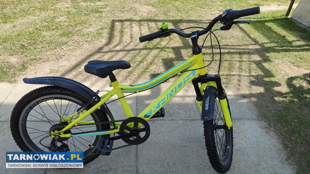 Sprzedam widoczny na zdjęciach rower Kands Smart na kołach 20 cali. Rama w rozmiarze 11 cali, opony bdb stan, hamulce i przerzutki sprawne, błotniki, dzwonek, drobne ślady użytkowania. Kolory zielona limonka mat plus niebieskie wstawki. Odbiór wyłącznie osobisty Lisia Góra ul Długa 39A