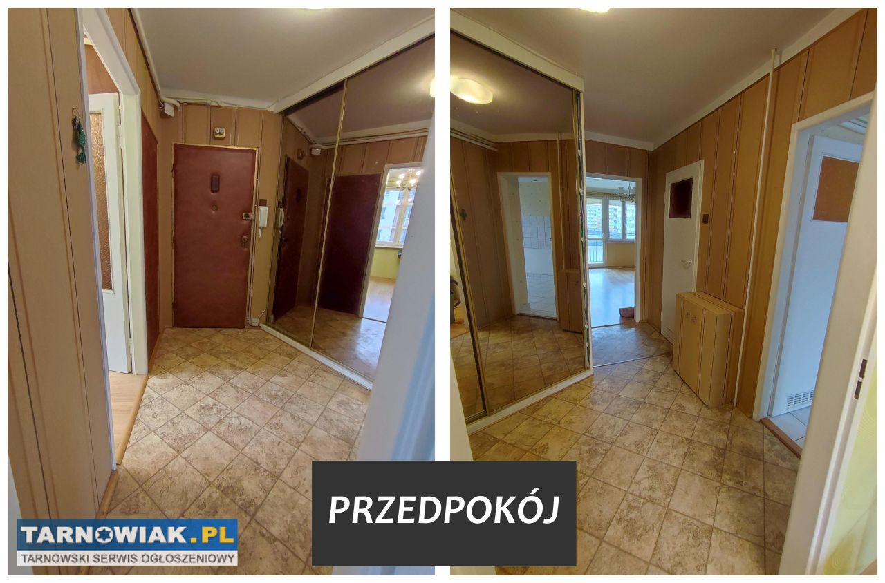 Mieszkanie składa się z dużego pokoju z wyjściem na balkon, drugiego mniejszego pokoju (obecnie znajduje się w nim szafa w zabudowie), przestronnej kuchni, łazienki z WC oraz przedpokoju.