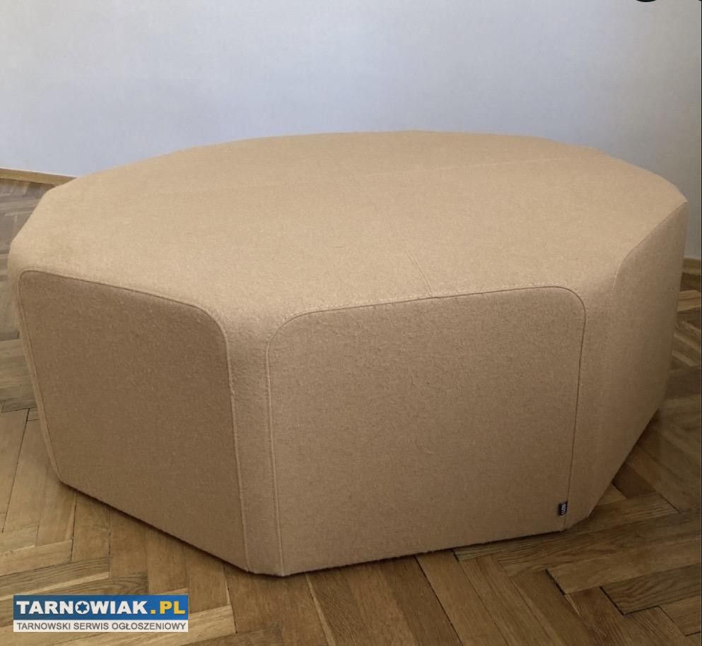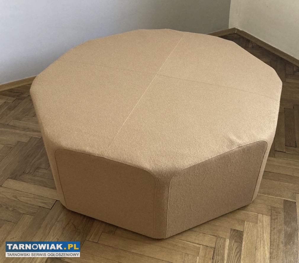 Pufa tapicerowana piękną wełną w kolorze musztardowym. Świetnie się prezentuje we wnętrzu. Szerokość pufy to 110 cm natomiast wysokości to 40cm. Świetna do pokoju dziecięcego lub do przedsionka.