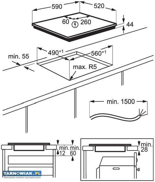 Wymiary wnęki do zabudowy (wys. x szer. x gł.) 4.4 х 56 х 49 cm