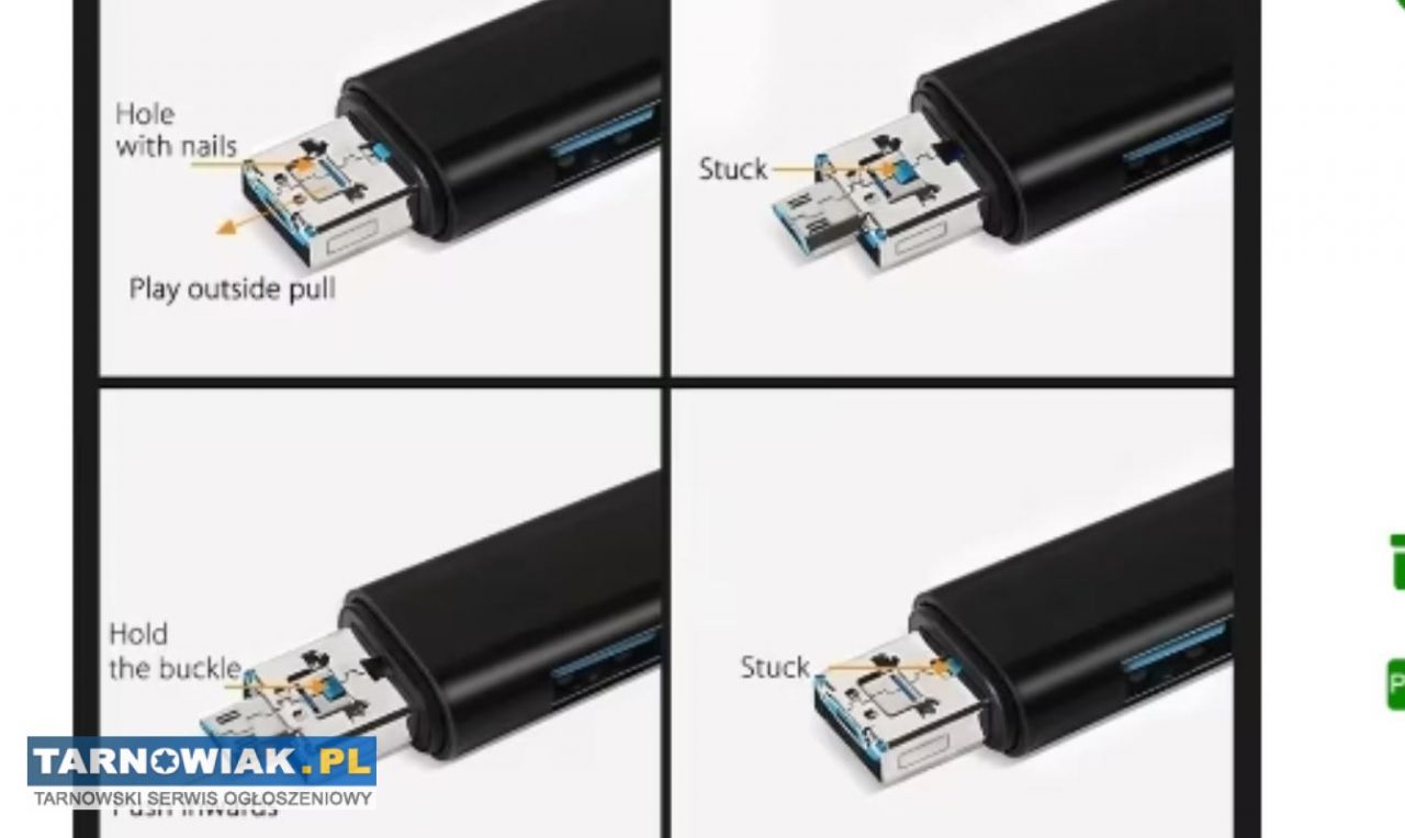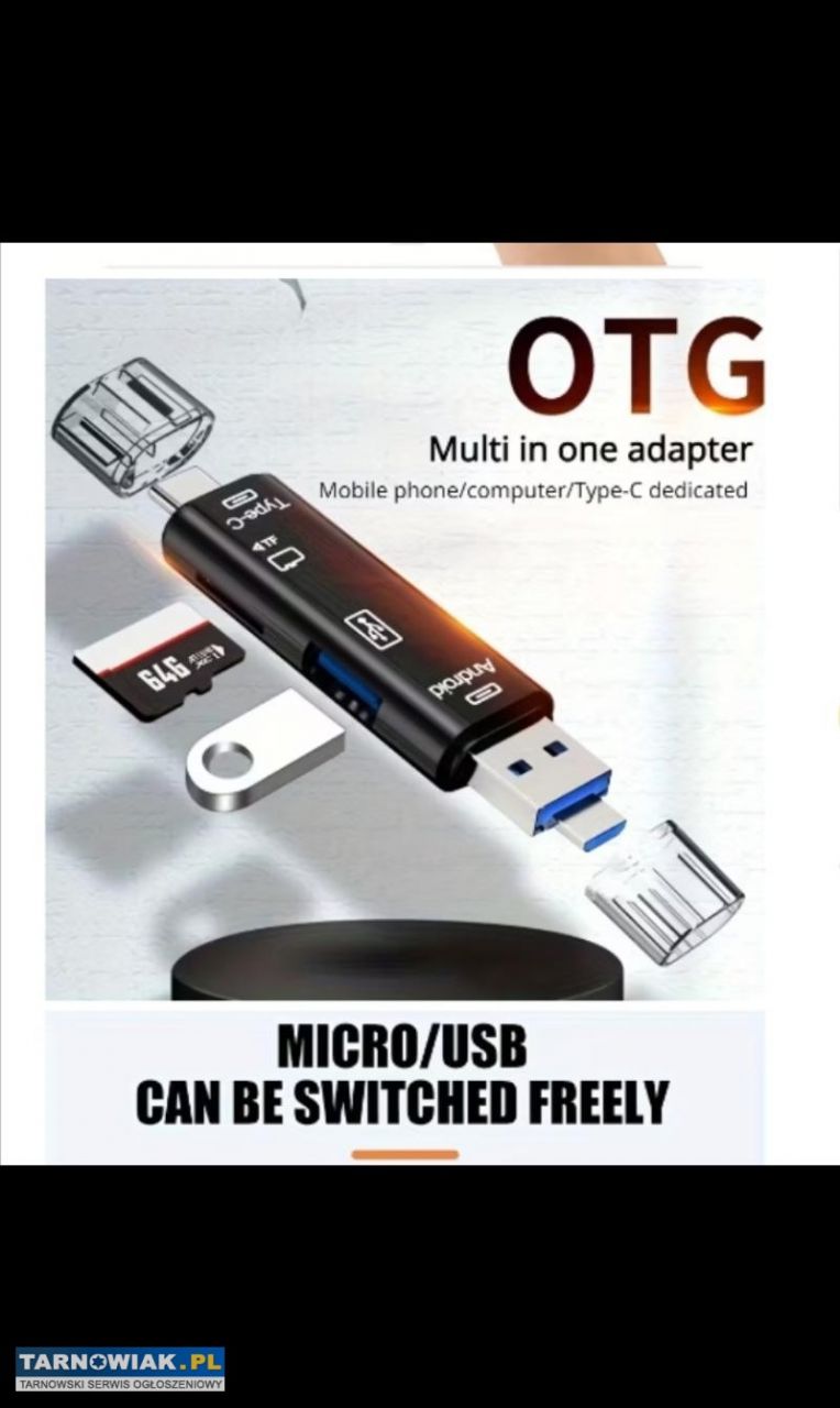 Nowy 5w1 Wielofunkcyjny czytnik kart pamieci USB 2.0 typC/Usb/Mikro Usb/TF/SD Adaoter OTG dla urządzeń mobilnych tj.komórka ,laptop, tablet itp. Długość 73,5mm szerokość 18,3mm za 16zl