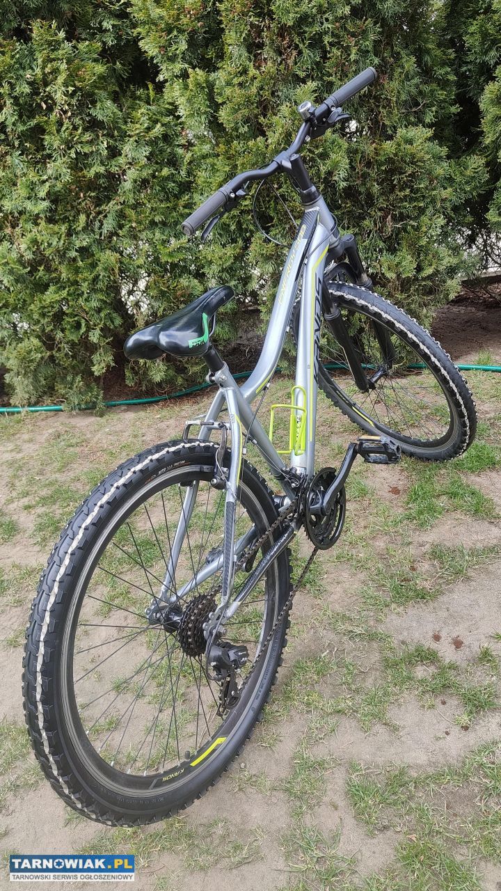 Sprzedam widoczny na zdjęciach rower Kands Energy na kołach 26 cali. Rama stalowa w rozmiarze 17 cali. Rower używany, sprawny. Kolor srebrny mat plus limonkowe wstawki. Odbiór wyłącznie osobisty Lisia Góra ul Długa 39A