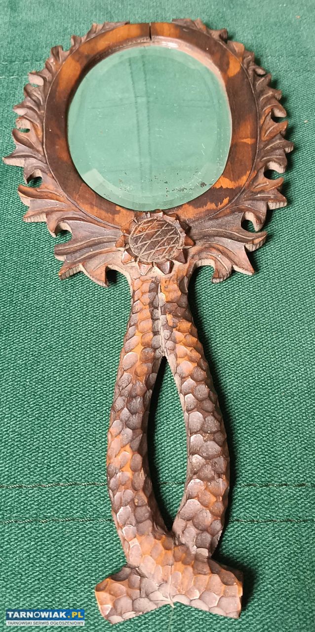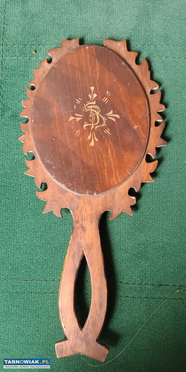 Stare drewniane lusterko do ręki zdobione vintage #2427957