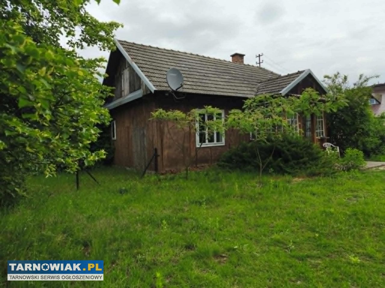 Opis nieruchomości: Dom parterowy, wybudowany w latach 60-tych, częściowo murowany (od strony drogi), częściowo drewniany, pokryty dachówką cementową, oraz wyposażony w drewniane okna. W środku znajduję się: