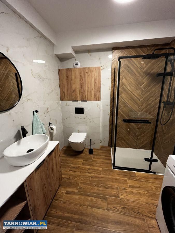 Do wynajęcia nowe, jeszcze nieużytkowane mieszkanie o powierzchni 42 m2, położone przy ulicy Błogosławionej Karoliny w Tarnowie, w nowoczesnym bloku. Mieszkanie zostało wykończone w wysokim standardzie i jest w pełni umeblowane. Mieszkanie składa się z przestronnego salonu z obszerną kuchnią, oddzielnej sypialni oraz łazienki z wc. Wnętrze zostało urządzone w nowoczesnym stylu, z dbałością o komfort i funkcjonalność. Do dyspozycji najemcy są również dwa miejsca garażowe w garażu znajdującym się w budynku. Lokal wyposażony jest w pralkę, lodówkę, piekarnik, kuchenkę mikrofalową i klimatyzację. Mieszkanie położone jest w nowym bloku z windą, na 1 piętrze.