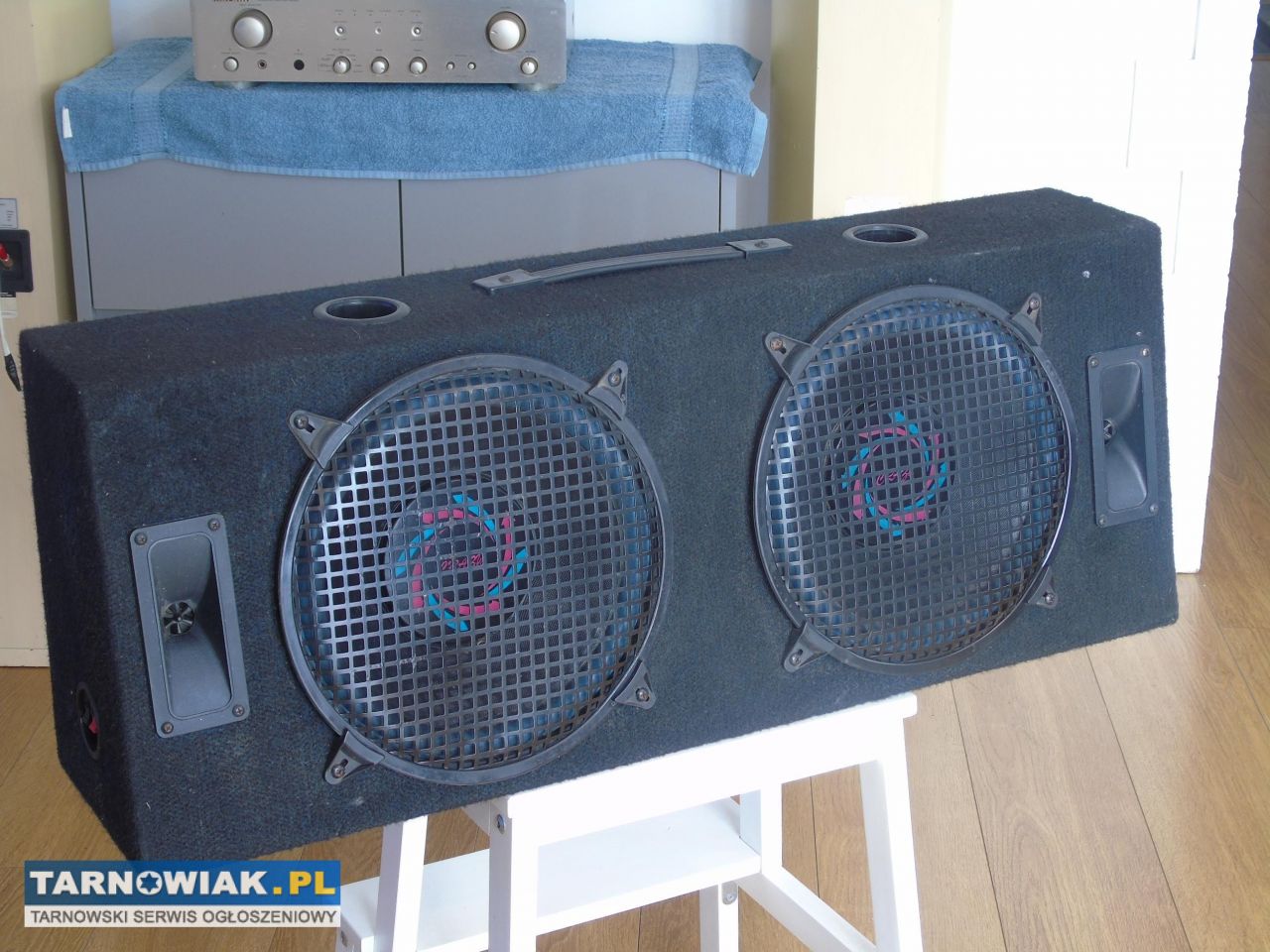 Głośniki basowe maja średnicę 30,5 cm każdy , zawieszenia są zdrowe i mocne.