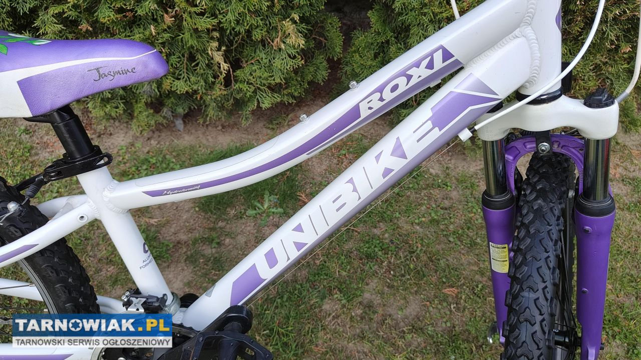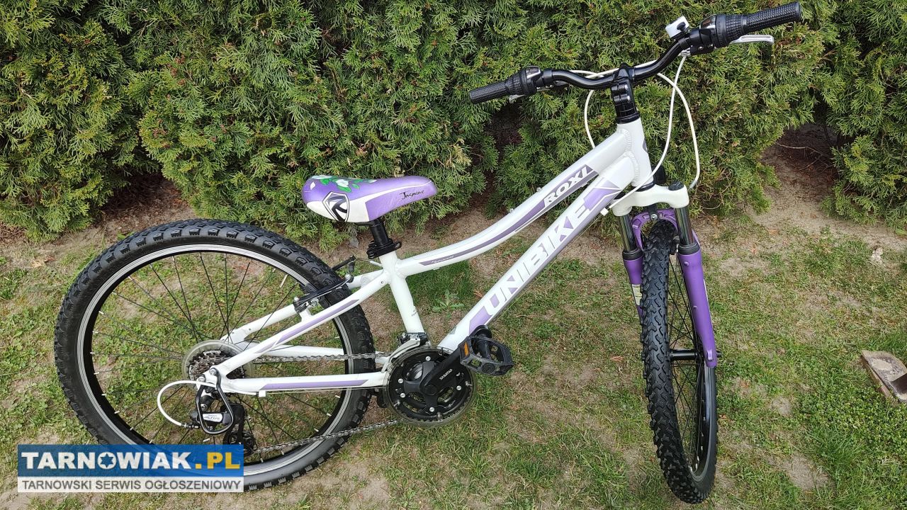 Sprzedam widoczny na zdjęciach rower Unibike Roxi na kołach 24 cale. Aluminiowa lekka rama w rozmiarze 12 cali. Rower sprawny, nie zniszczony. Drobne ślady użytkowania. Kolor biały mat plus fioletowe wstawki. Odbiór wyłącznie osobisty Lisia Góra ul Długa 39A