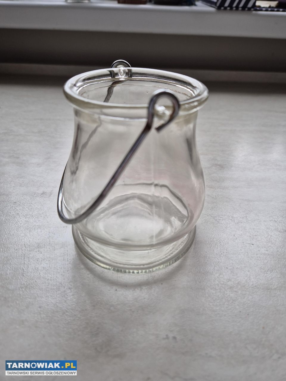 Szklany lampion, świecznik, latarnia z metalową rą #2429966
