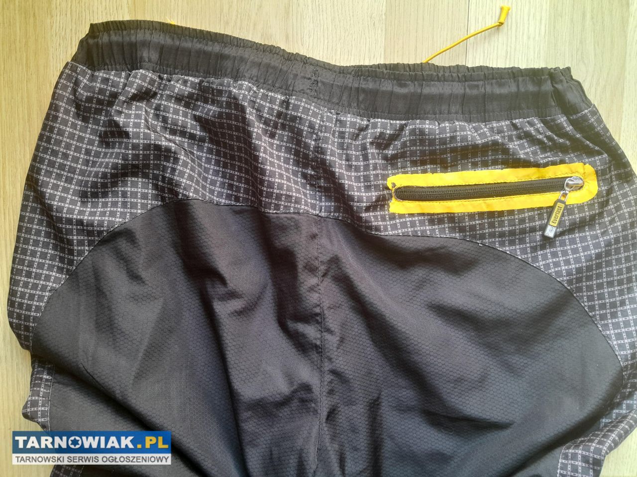 Dwie kieszenie na zamek po bokach, i jedna z tyłu też na zamek