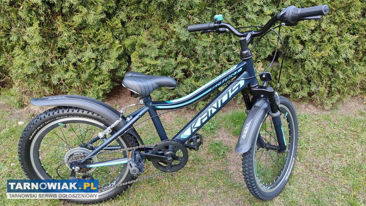 Sprzedam widoczny na zdjęciach rower Kands Smart na kołach 20 cali. Rama w rozmiarze 11 cali, błotniki, dzwonek, siodełko bez dziur, przerzutki Shimano 1x6, sprawny technicznie. Z przodu nowa opona, z tyłu jak nowa. Bdb stan, gotowy do jazdy. Kolor morski matowy. Odbiór wyłącznie osobisty Lisia Góra ul Długa 39A