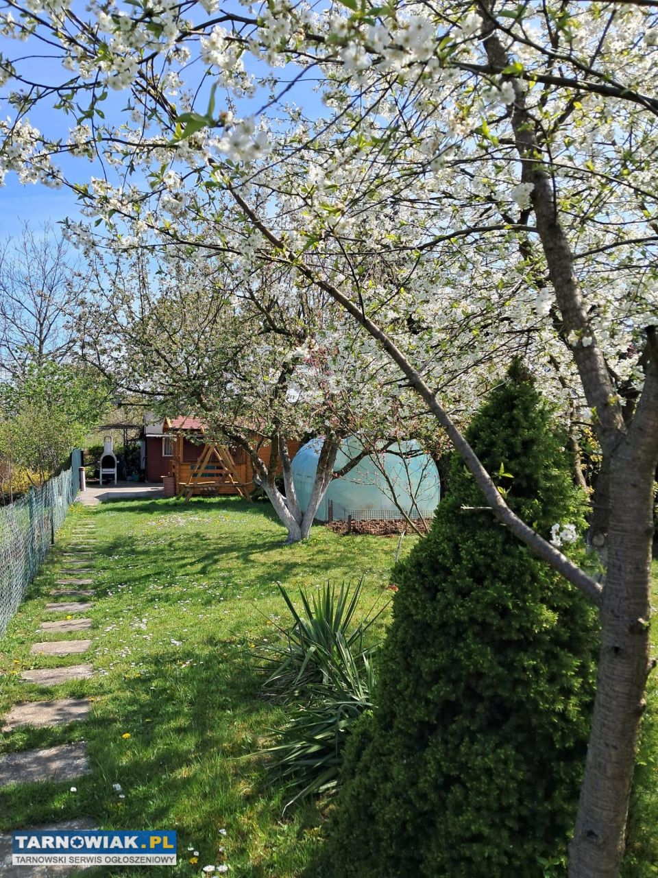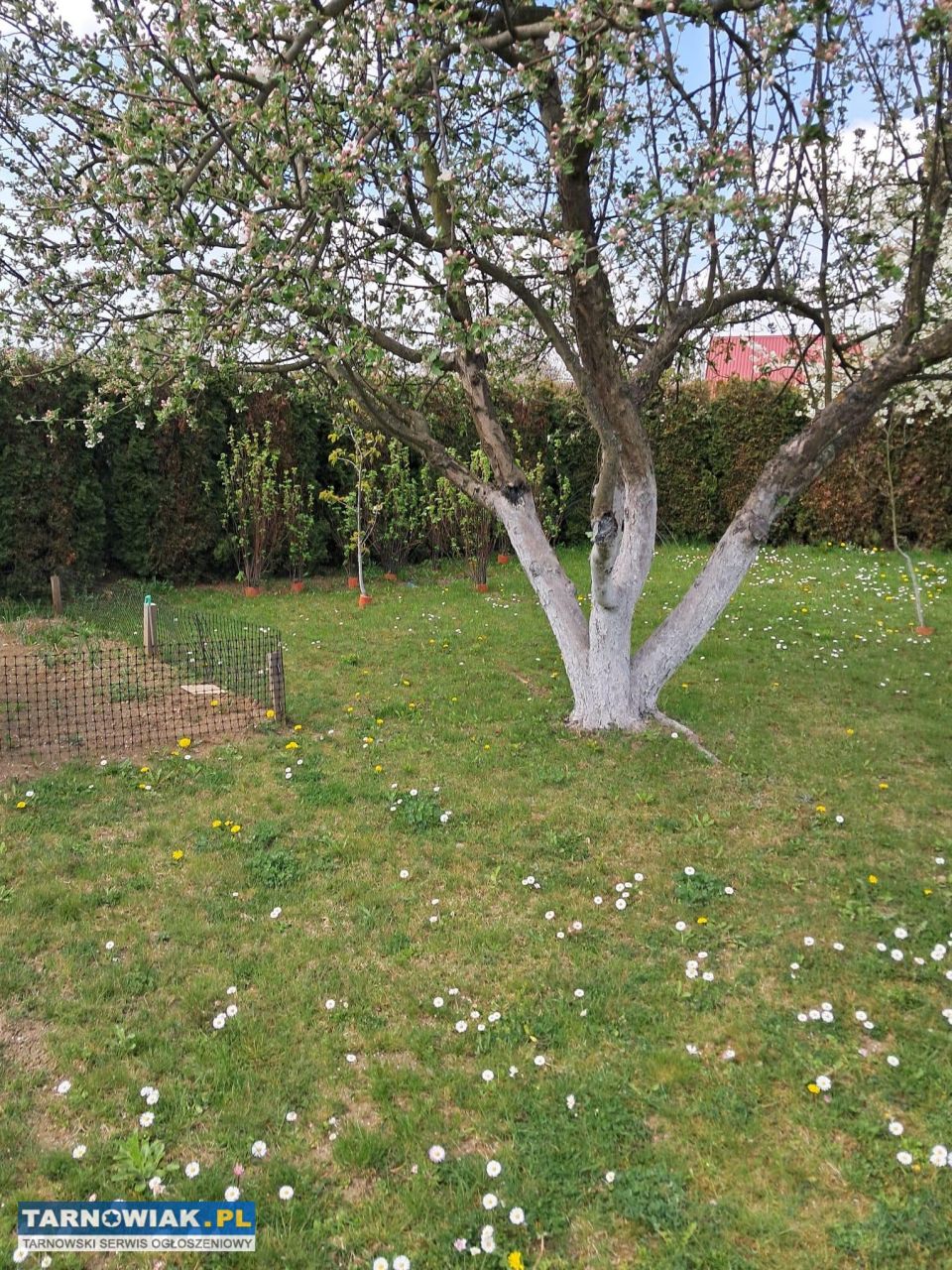 Działka jest pięknie utrzymana i posiada liczne, zdrowe nasadzenia i zabudowy;
