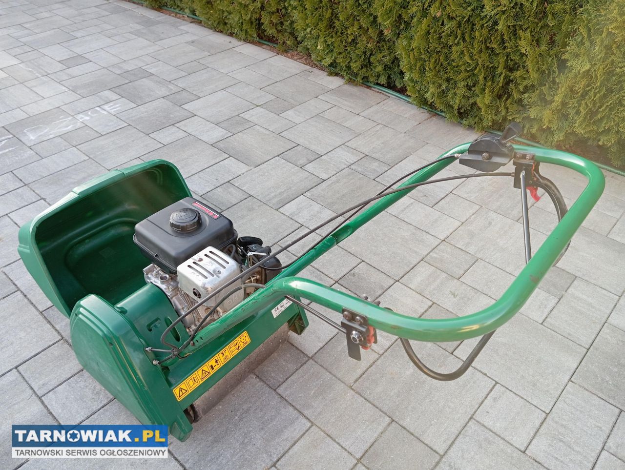 Kosiarka przeszła serwis techniczny : Została pomalowana na zielono kaseta tnąca. Wrzeciono jak i nóż dolny został profesjonalnie naostrzony ostrzałką maszynową .Tnie idealnie papierek testowy sprawdzający naostrzenie noża. Został wymieniony olej silnikowy SAE 10W30 oraz filtr powietrza. Zostały naoliwione wszystkie linki oraz wyregulowane wszystkie paski napędowe. Jest gotowa do sezonu. Robi piękne pasy na trawniku. Możliwość sprawdzenia na miejscu. Odbiór osobisty , miejscowość RZUCHOWA zapraszam do kontaktu Tel. 6 9 8 6 3 8 0 6 2