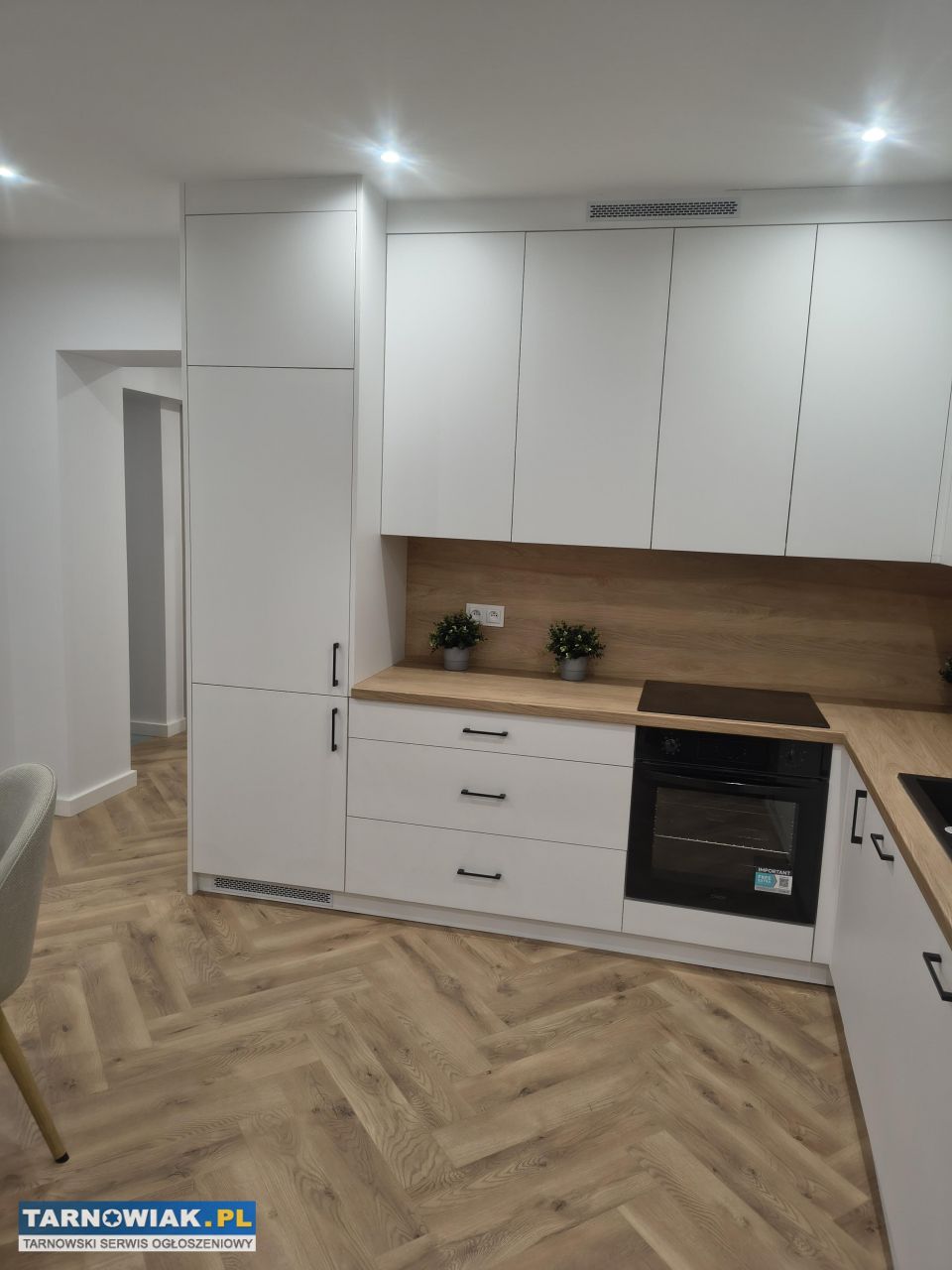 Kuchnia jest w pełni wyposażona w sprzęt AGD (lodówka, płyta grzewcza, piekarnik), co umożliwia wprowadzenie się bez dodatkowych kosztów.